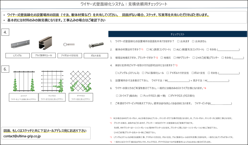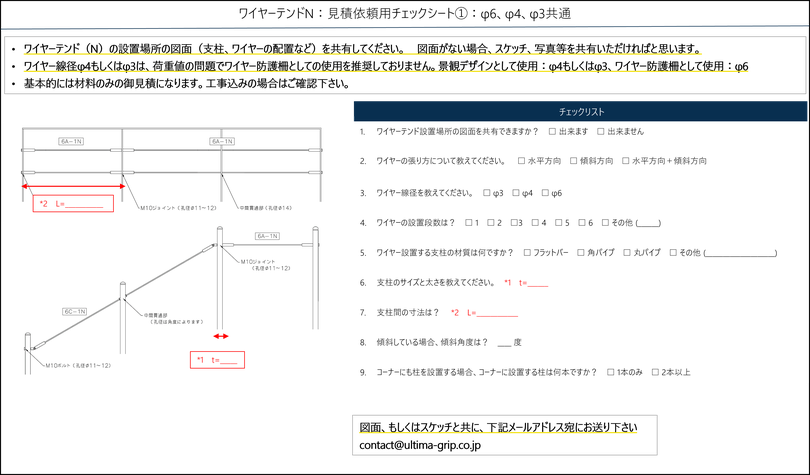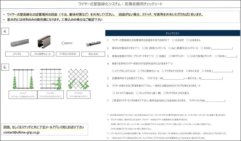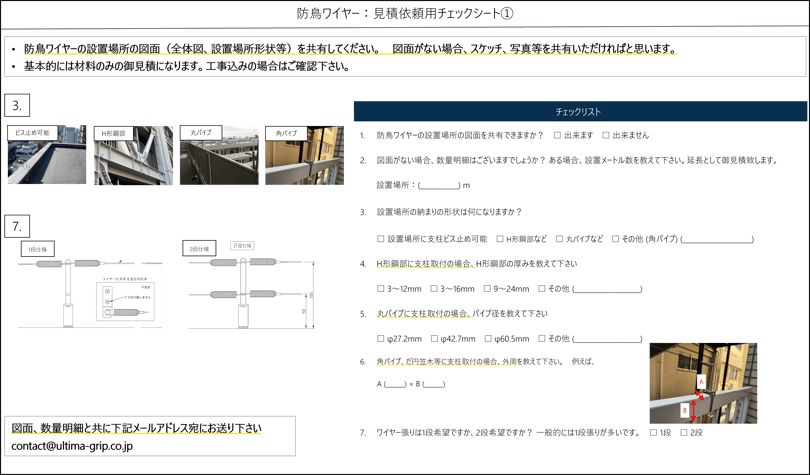 問題ございませんでしたら、下記見積依頼チェックシートをダウンロードいただき、記載していただくか、図面等を共有いただければと思います。