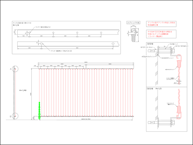 ※Lアングルでも、アイボルト付き支柱でも、どのような納まり支柱でも、基本的には同様の取付になります