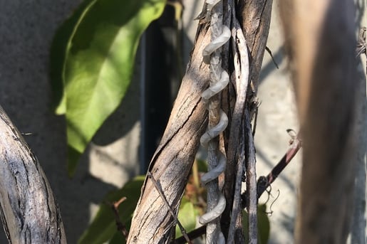 落葉樹などの様に一年で枯れて葉が落ちても、翌年にはしっかりと新芽を出し、既存の枝と共に巻きついて登はんしています。