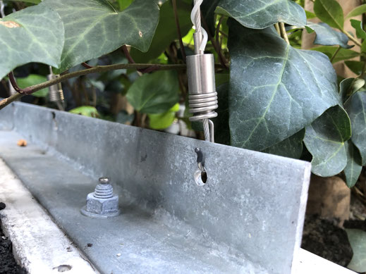 通常の納まり支柱材として選択される事の多い【Lアングル】や【アイボルト付き支柱】の他、アルティマ オリジナル支持材【アルミ製緑化レール】。