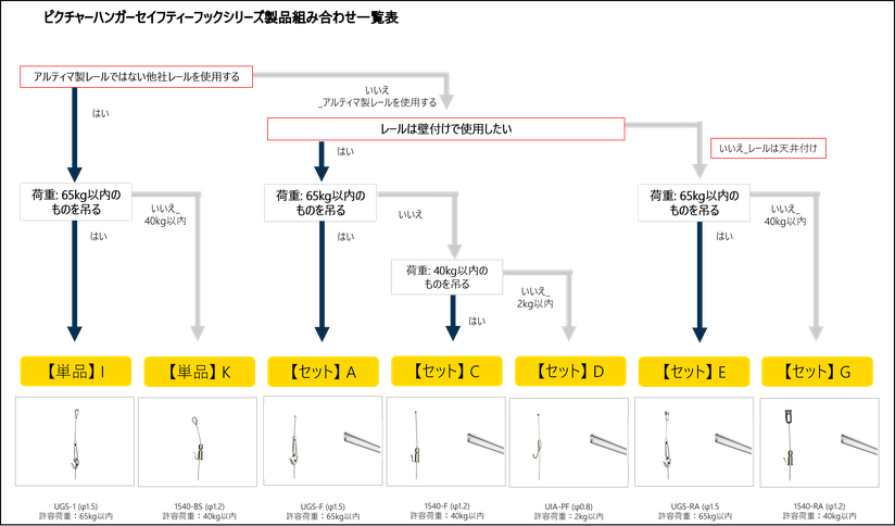 ・レール壁付け用ピクチャーハンガー UIA-PF (ワイヤー線径φ0.8)×1組 L=1,000もしくはL=1,500