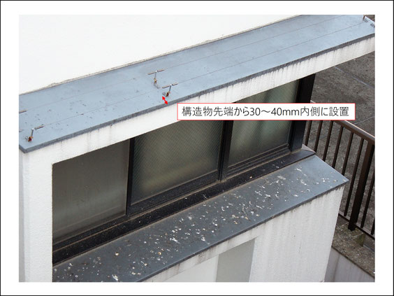 構造物の縁にアルティマ(Uグリップ)防鳥ワイヤーを設置することで鳩は止まれなくなり、侵入を諦めます。