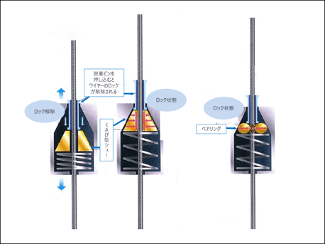 ピクチャーハンガーセイフティーフックシリーズは、より線径の細いワイヤーで重量物を安全に吊るす事が出来る。という事です。