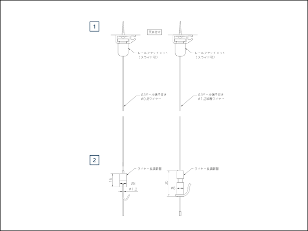 弊社レール天井付け用 ※レール在庫限りに伴い、ワイヤーセットも在庫限りとなります |