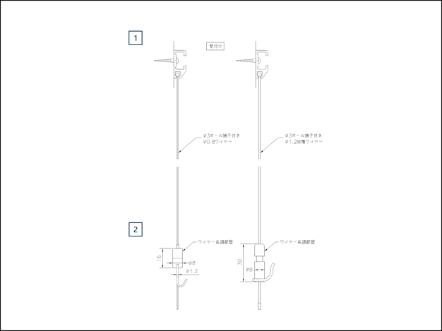 A ワイヤー径は、φ1.5mm、φ1.2mm、φ0.8mmの3種類のラインアップがあります。