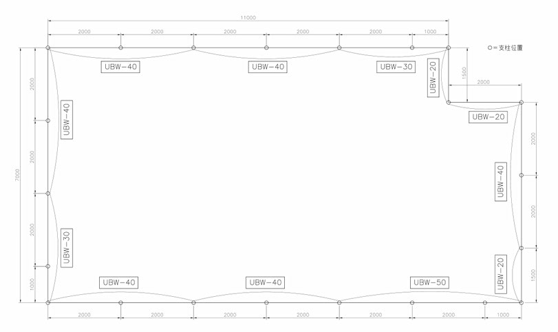 ※支柱UBS-FNシリーズでも、支柱ピッチは同様です。