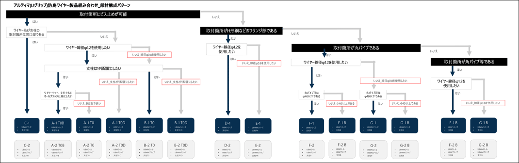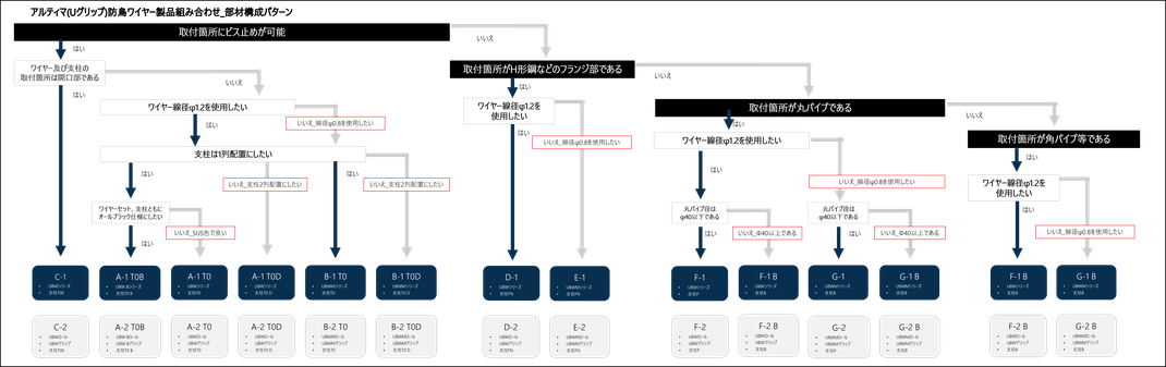 製品仕様_部材構成パターン (ワイヤーセット) A-1 T0、B-1 T0 他