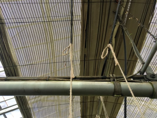 多くの場合、つる植物(特に長尺)は麻ひも等に誘引し、成長させています。
