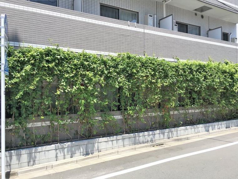 世界の何処にもない緑化専用ワイヤーという特徴が、プランター緑化のリーディングカンパニーであるトーシンコーポレーション様の仕様ニーズに合致した事からご採用いただいております。