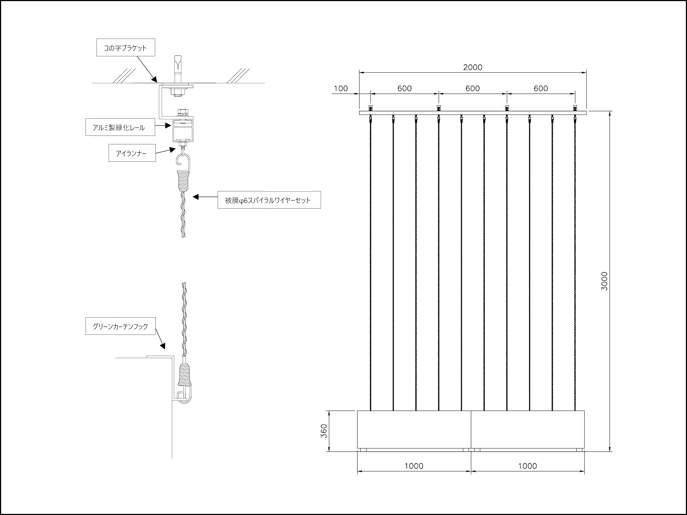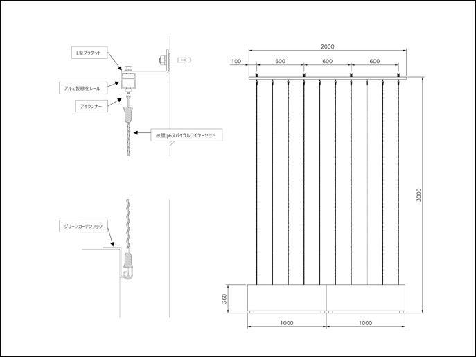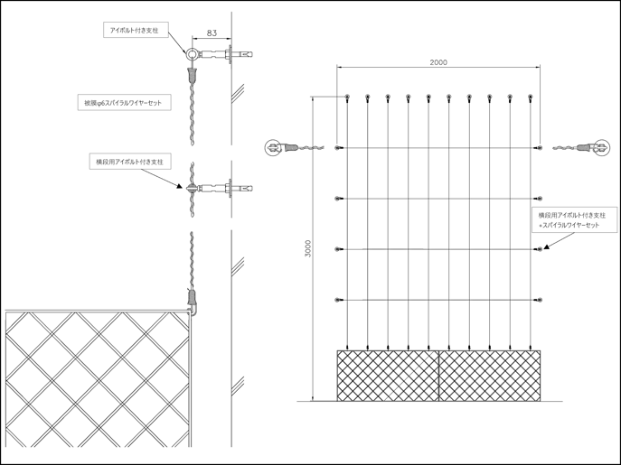 寸法例:W2,000mm×H3,000mm (ワイヤーピッチ@200mm)