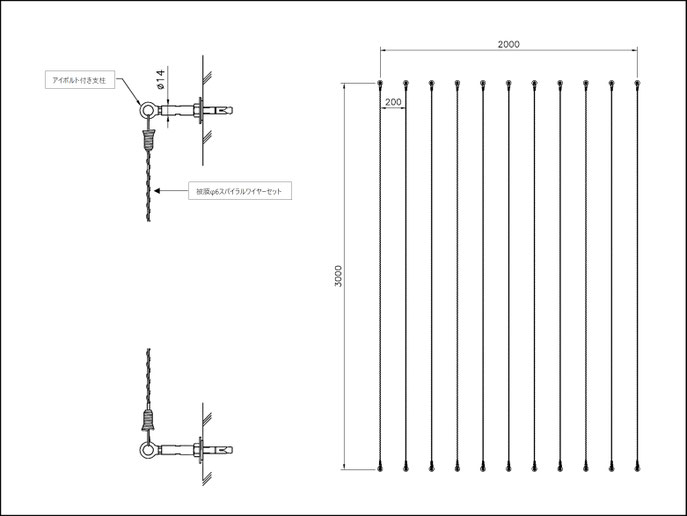 寸法例:W2,000mm×H3,000mm (ワイヤーピッチ@200mm)