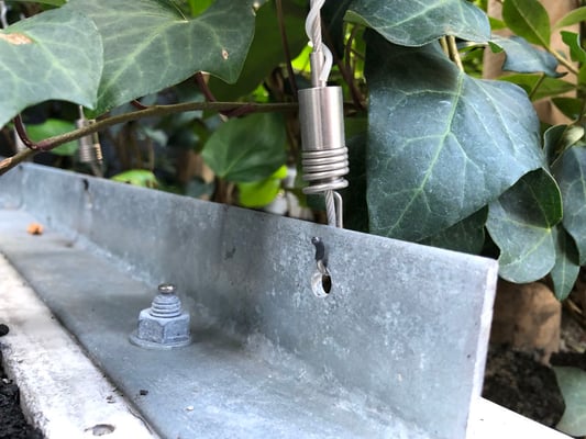 通常の納まり支柱材として選択される事の多い【Lアングル】や【アイボルト付き支柱】の他、アルティマ オリジナル支持材【アルミ製緑化レール】。