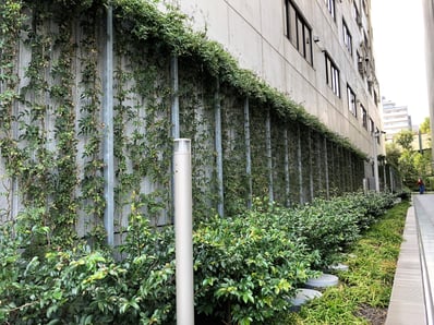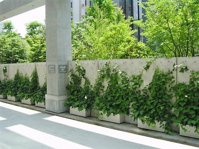 一言で壁面緑化といっても様々な形態があります。直接登はん型、基盤型、下垂型等。用途、コスト、景観によって選択が変わります。