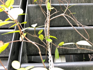 蔓科植物は北半球では右方向に巻き、南半球では左方向に巻き付きます。日本では右巻き付きになります。その自然の法則を活かし、ワイヤーと植物の系着力をより強固にすることが出来ます。
