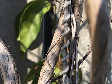 落葉樹などの様に一年で枯れて葉が落ちても、翌年にはしっかりと新芽を出し、既存の枝と共に巻きついて登はんしていきます。