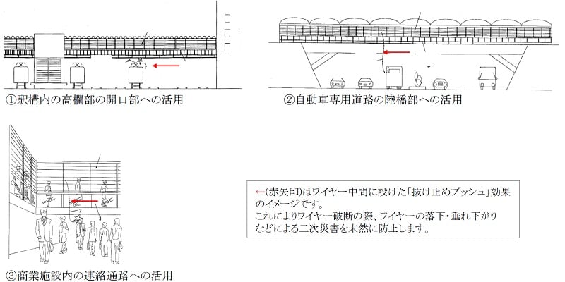 ジェイアール東日本コンサルタンツ㈱と共同開発、共同出願をした製品を発展させ、壁面緑化、防鳥ワイヤーのノウハウを投物防止に応用。