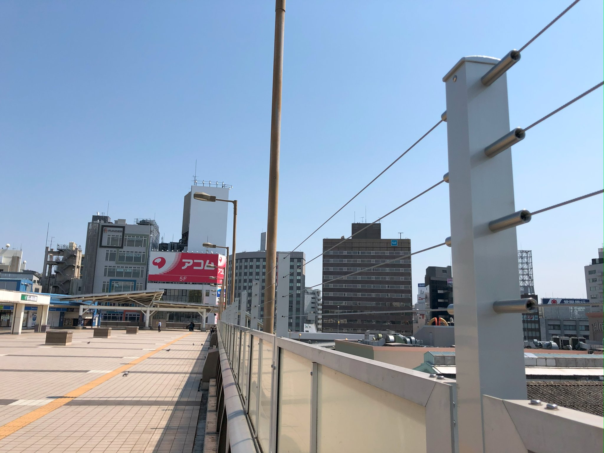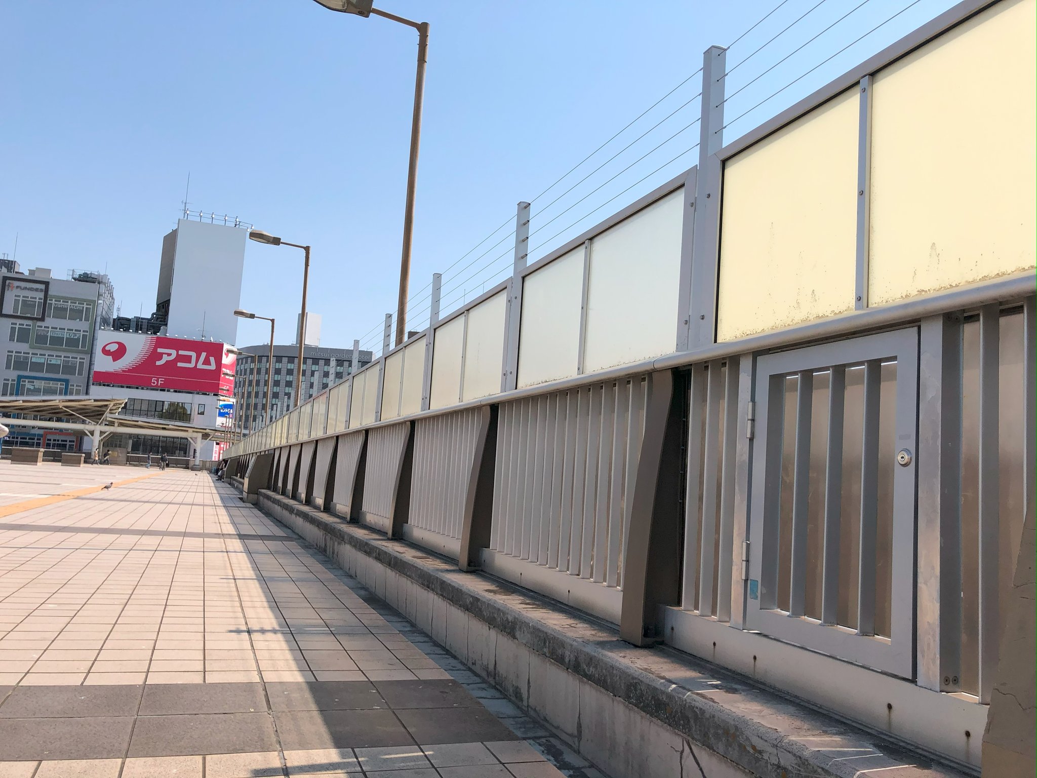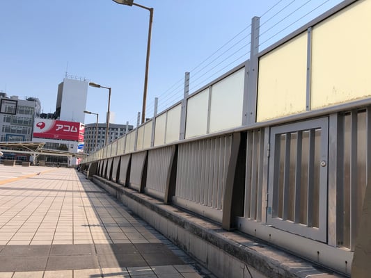 妨害、いたずらなどのリスク対応力の向上の為、駅構内自由通路や陸橋、連絡橋などから投げ込まれる空き缶や雑誌などの妨害物の投物を防ぐ柵の整備として、既設柵を嵩上げし、ワイヤーを設置しました。