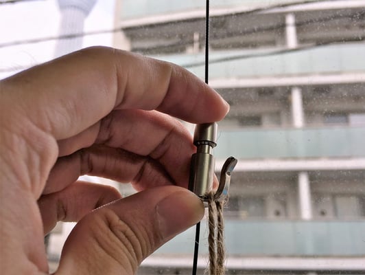 ビス止め取付式で設置する場合、対象の窓もしくは空間の横寸法と必要ワイヤー本数をご連絡ください。