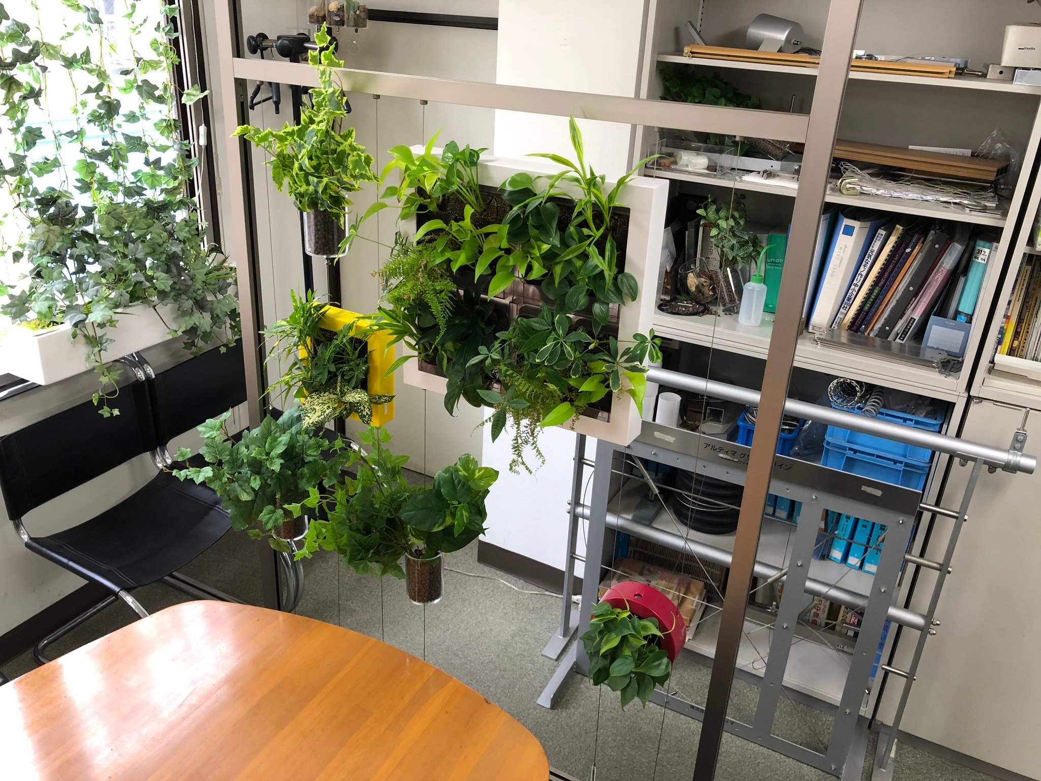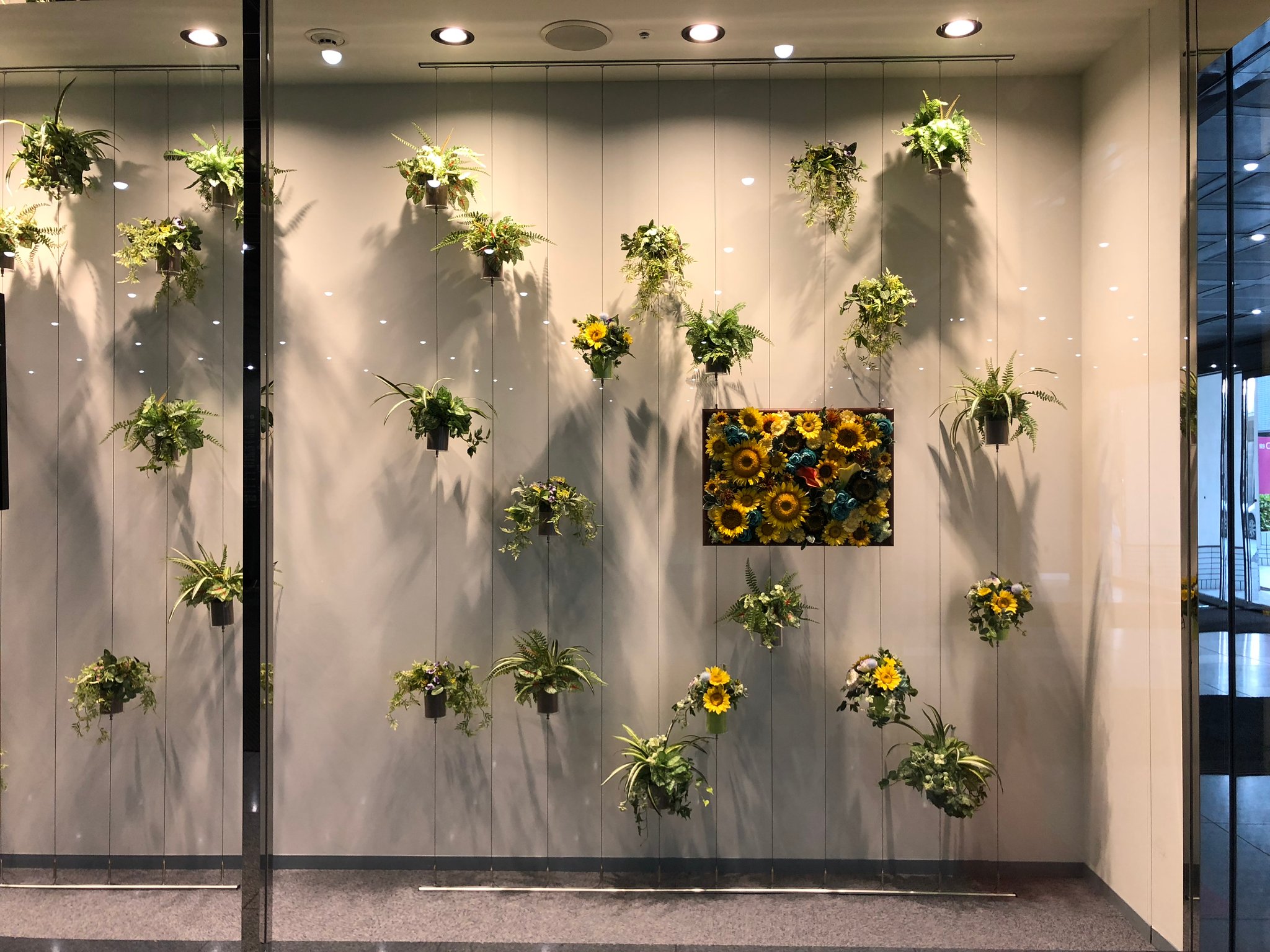 あとはワイヤーにフェイクグリーン(植栽)を誘引、もしくは、ハンギングアイテムを取付ければ完成です。