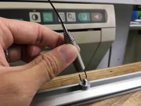 5. ワイヤーのバネ+アタッチメント側を下端レールの端(穴)から差し込む