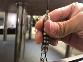 2. バネ部先端のピンへワイヤーを差し込む