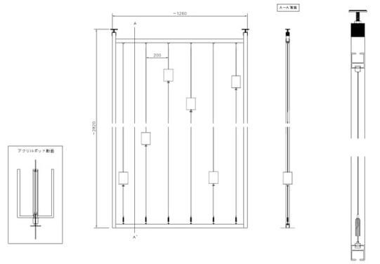 3. ライティングレールに既製フックを取付け、ワイヤーを引っ掛けます。※フックの角度によって、取付位置は変わります