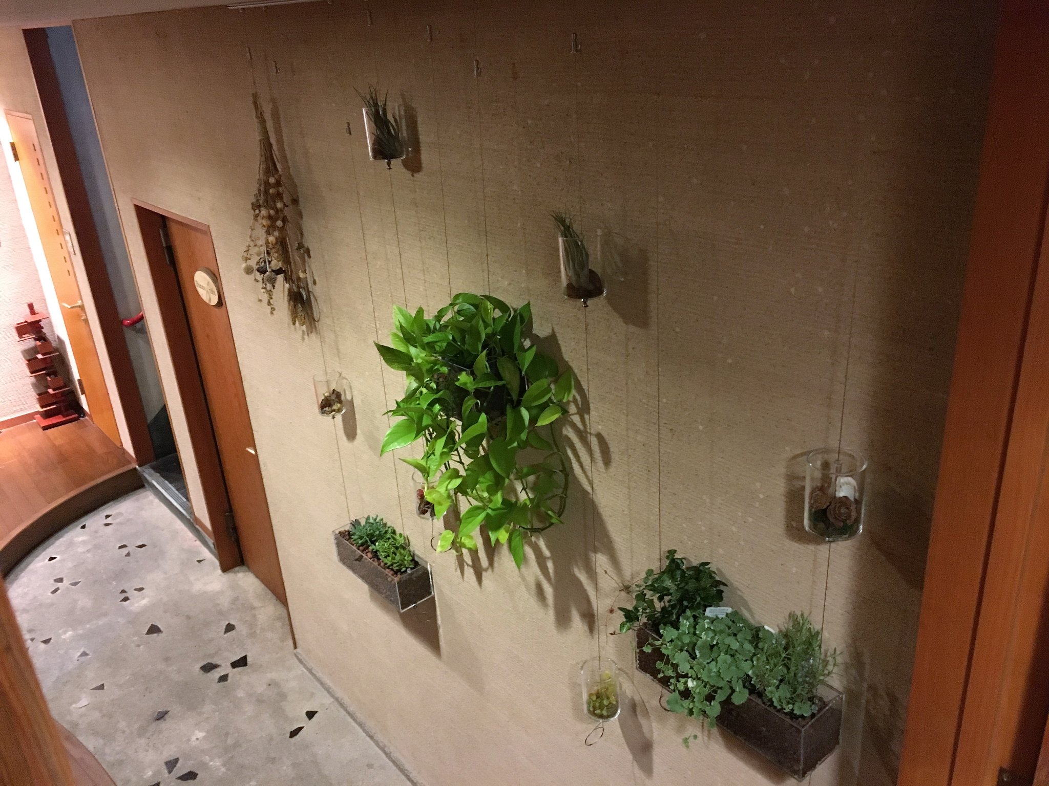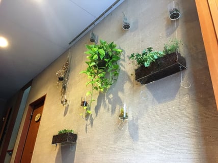 ハンギングアイテムに入れるものは植栽に限りません。あなたの好きなものを入れて、演出していただけます。カラーペンを入れるだけでも空間に映えます。
