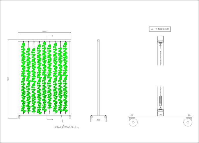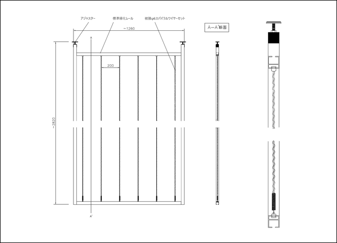 1-1. アジャスター突っ張りタイプ:アルミ製緑化レール仕様