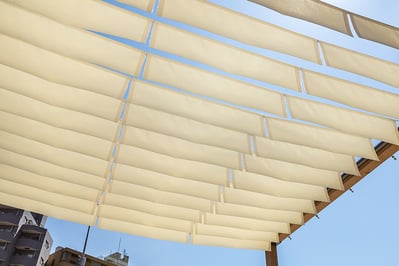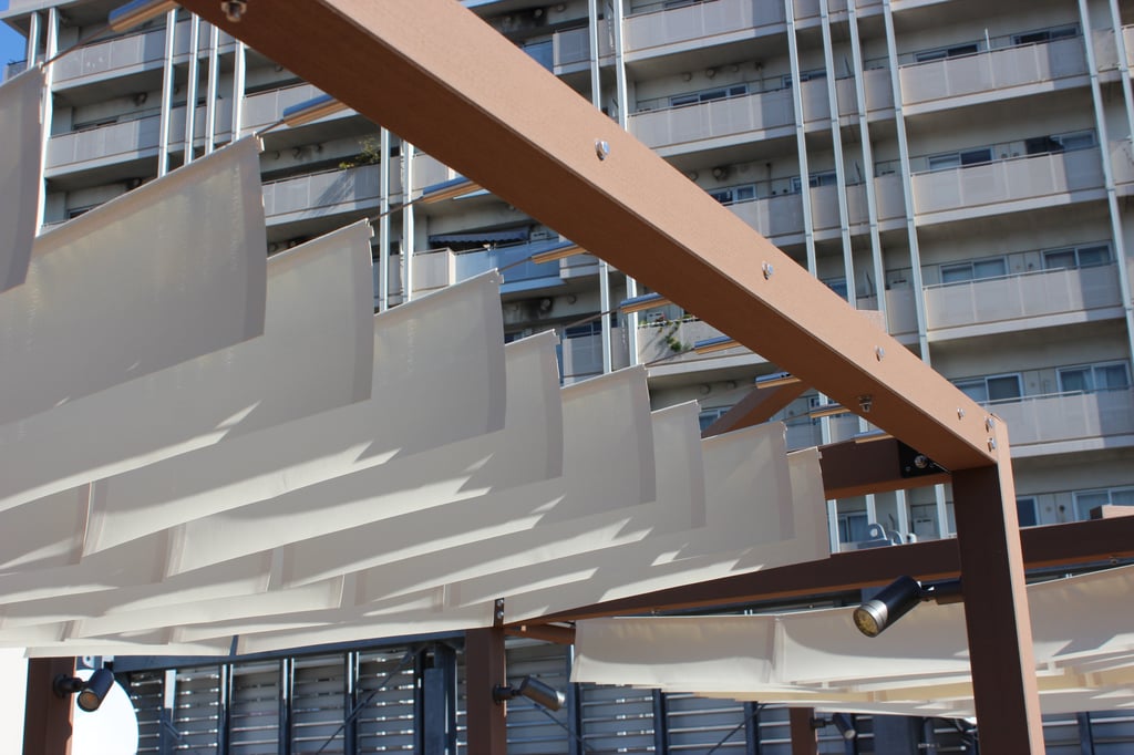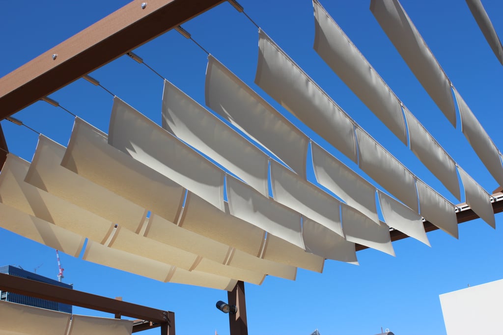 耐候性、遮熱性にすぐれており、変色しにくい布製シェードを採用。
