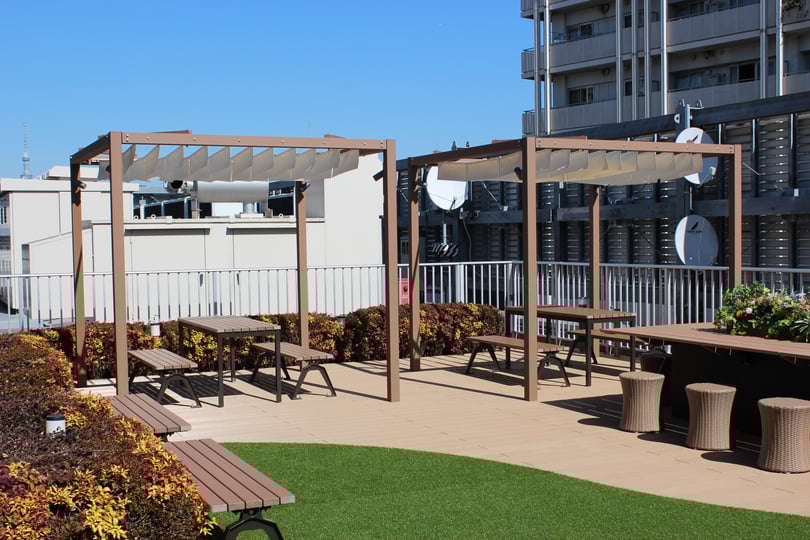 基本ユニットを連結させ、人工木デッキ材やベンチを設置することが可能です。