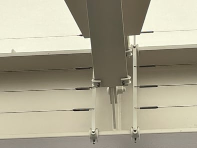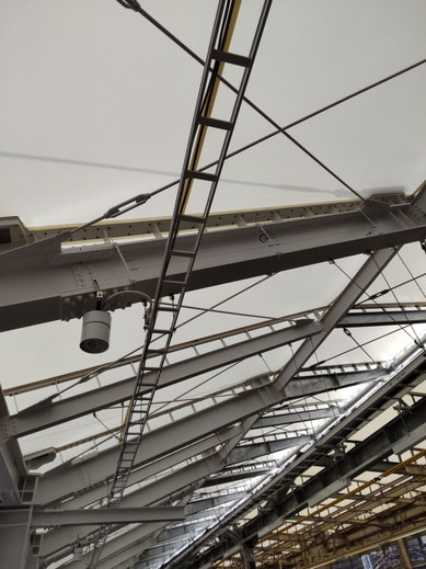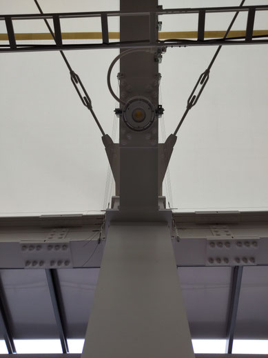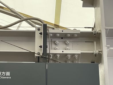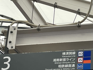 備考:神奈川県川崎市、JR武蔵小杉駅構内に横須賀線新ホーム増築に伴い、鳩が止まる可能性がある箇所に防鳥ワイヤーを設置。主な設置箇所であるH鋼の色に合わせてビス止め支柱、フランジ部専用支柱を白塗装。また、H鋼部に鳩を入れさせたくないという先方様の要望から、特注プレート(白色)を製作し、ワイヤー3段他の設置。支柱の塗装化、特注支柱の製作など、先方様のご要望に沿う形で製作した好事例となります。防鳥ワイヤー計10,000m以上の大型案件。
