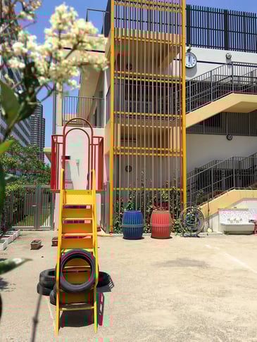 2013年10月に施工。江東区北砂の保育園、屋外壁面に設置。
