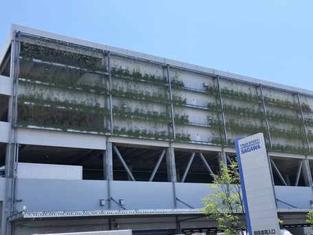 植栽は各フロアにプランターを設置、ワイヤー張りパターンはストライプ、被膜φ6スパイラルワイヤー使用。