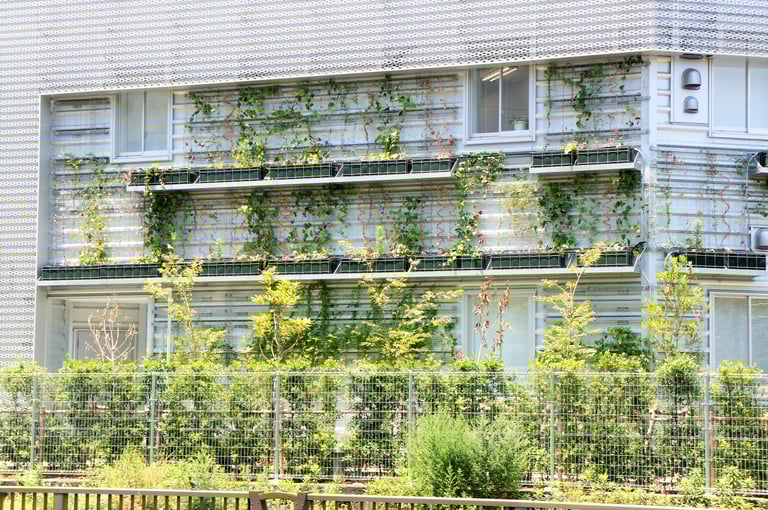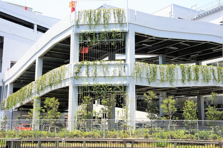 植栽はプランター、ワイヤーパターンはストライプ、被膜φ6スパイラルワイヤー使用。