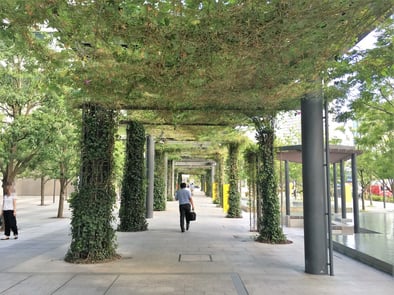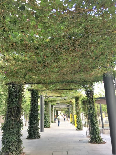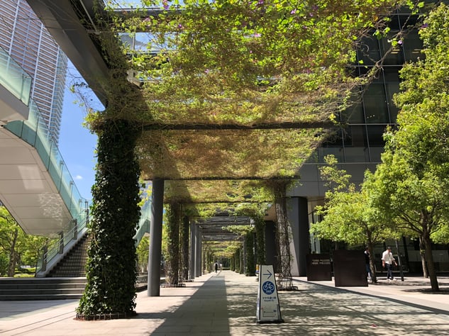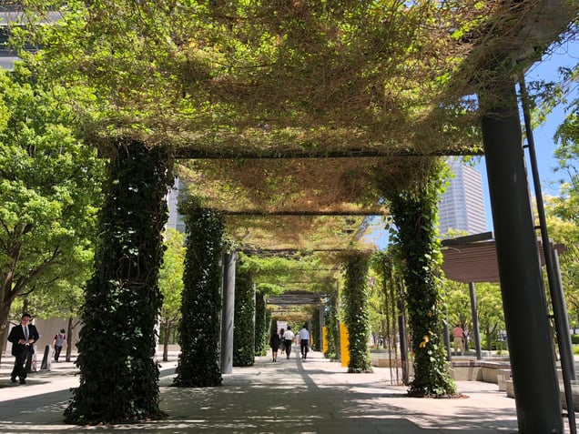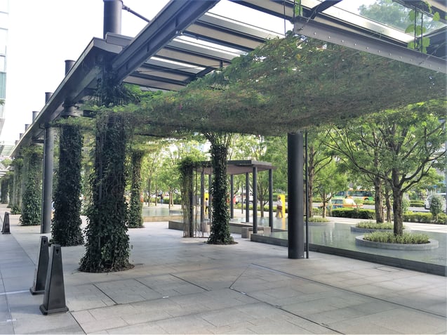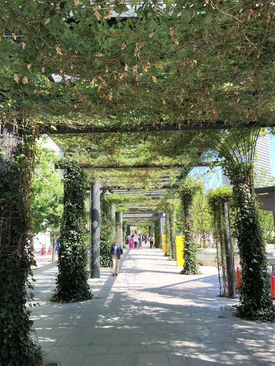備考:2010年に豊洲ファレシア、アヴァンセリアン豊洲前の歩道にパーゴラを設置しました。商材はアルティマ ターンバックル。設置時は、枠にワイヤーが張られているだけのものでしたが、年月が経つにつれ、植物が成長し、2016年現在、見事な緑のパーゴラになりました。見てるだけで涼しさを感じられます。